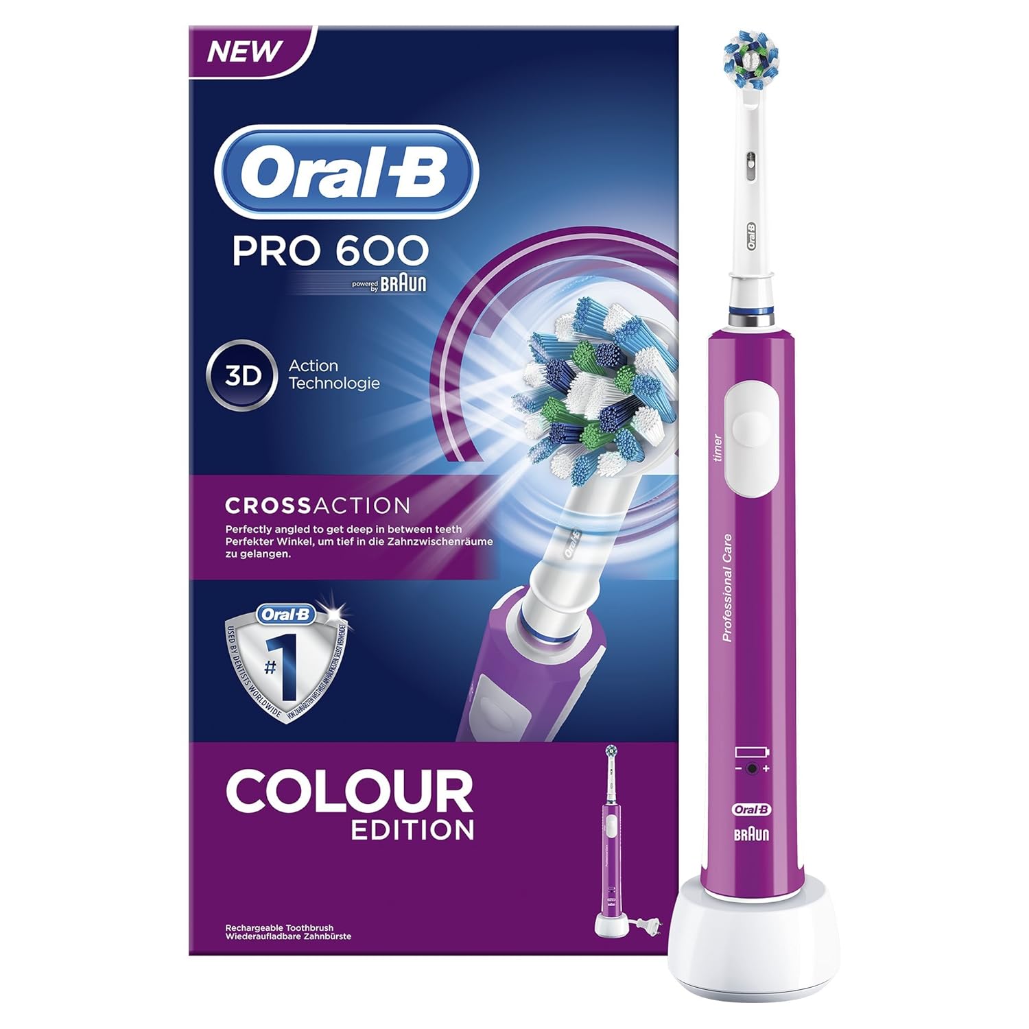 Oral-B PRO 600 CrossAction - Cepillo de dientes eléctrico recargable con tecnología Braun, edición purple