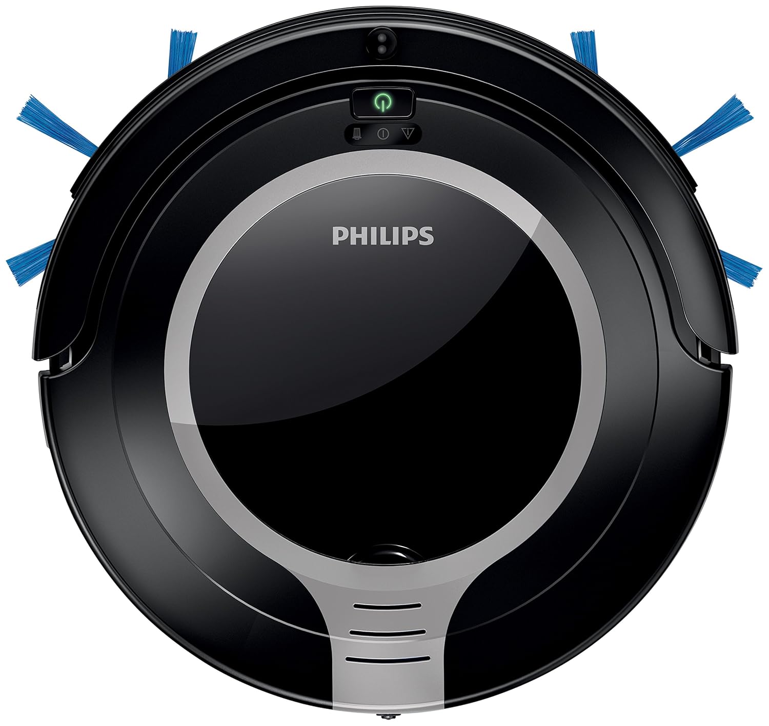 Philips FC8710/01 - Robot aspirador, diseño súper compacto 6 cm, 2 fases, programación 24 h, con mando, color plateado metálico y negro intenso
